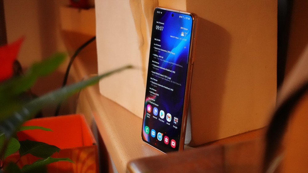 In mano S21 e S20 sono molto simili e le differenze qualitative si limitano alla sensazione di “freddo” che da il vetro posteriore e a poco altro. Nella versione Phantom Violet che ho in prova non posso non notare un “doppio bordo” intorno allo schermo, effetto che si crea nel momento in cui la cornice nera, molto sottile, si scontra con il frame metallico di color oro che racchiude il telefono. In nero probabilmente l’effetto sparisce come per S21 Ultra ma è un compromesso da accettare se si preferiscono i bordi piatti rispetto ad una curvatura che ha il vantaggio di rendere la cornice laterale praticamente invisibile.