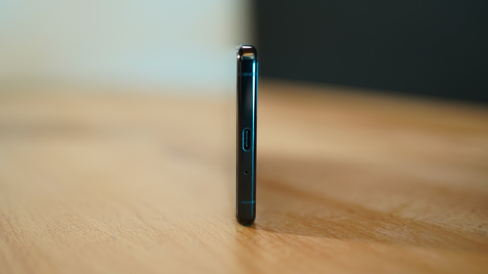 Il form factor è 21:9, alla vista l’effetto telecomando si concretizza ma in mano apprezzerete la larghezza contenuta e il peso “educato”, (166 × 72 × 7,9 mm per 181 grammi) così come il bilanciamento impeccabile delle masse. E’ resistente all’acqua con certificazione IP68, costruito con vetro Gorilla Glass fronte-retro, con bordo in alluminio.