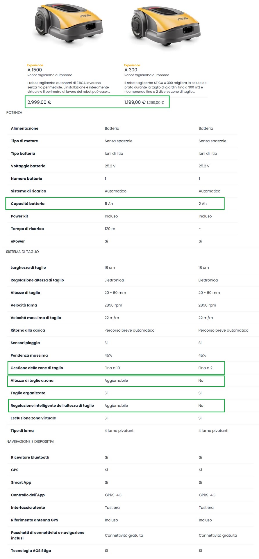 CONFRONTO STIGA A1500 vs A300 CON EVIDENZA DELLE DIFFERENZE