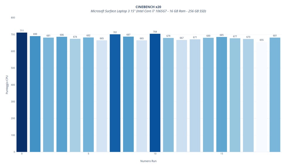 Con un utilizzo lavorativo sotto rete WiFi che potremmo definire standard siamo riusciti ad ottenere fino a 8 ore di utilizzo continuativo con luminosità del display al 50% circa, sufficiente per lavorare in un ambiente chiuso ma luminoso. Utilizzando il Laptop 3 soltanto per guardare video in streaming su Netflix o YouTube si può invece arrivare a 9 ore e mezza. Infine, sfruttando al massimo l’hardware a disposizione il notebook esaurisce la carica dopo circa due ore.