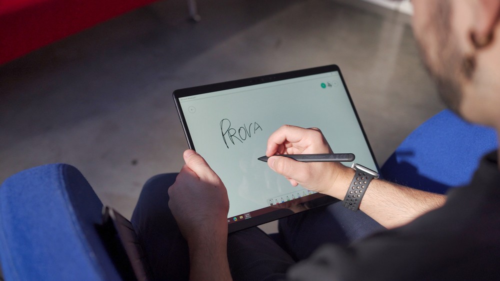 Il peso rimane invariato (774 grammi solo parte tablet) ma la struttura è leggermente più ampia, così da implementare un display da 13 pollici. Esattamente come la controparte Intel, il pannello è di altissima qualità e vanta una risoluzione di 2880 x 1920p con proporzioni 3:2, naturalmente touch e protetto da un vetro lucido. Questo ovviamente crea dei riflessi, ma grazie all’elevata luminosità massima di 450 nits si riesce a utilizzare anche in ambienti dove abbiamo condizioni di luce difficili.