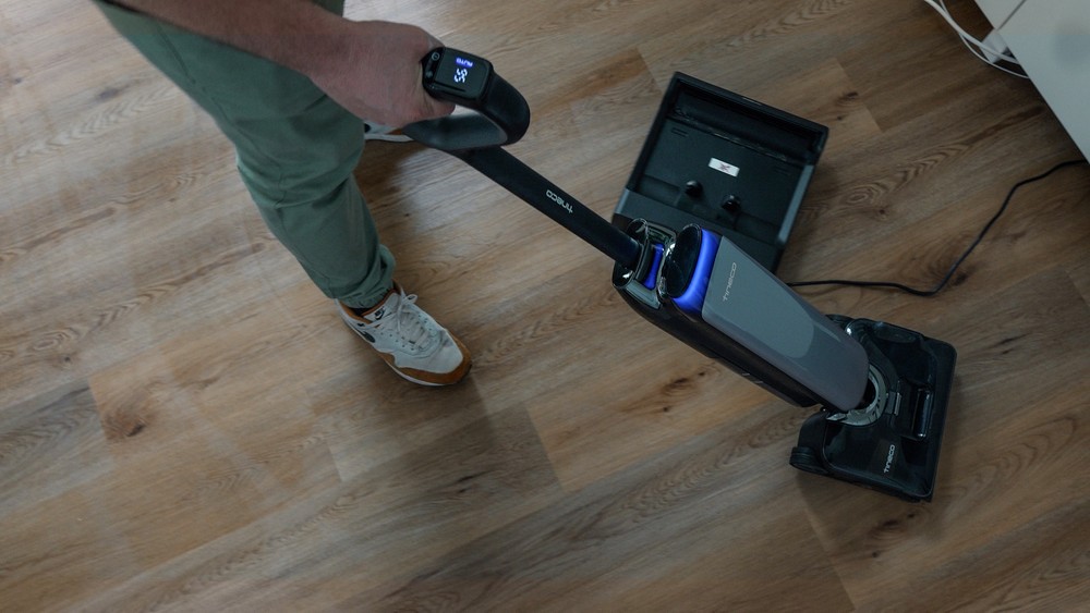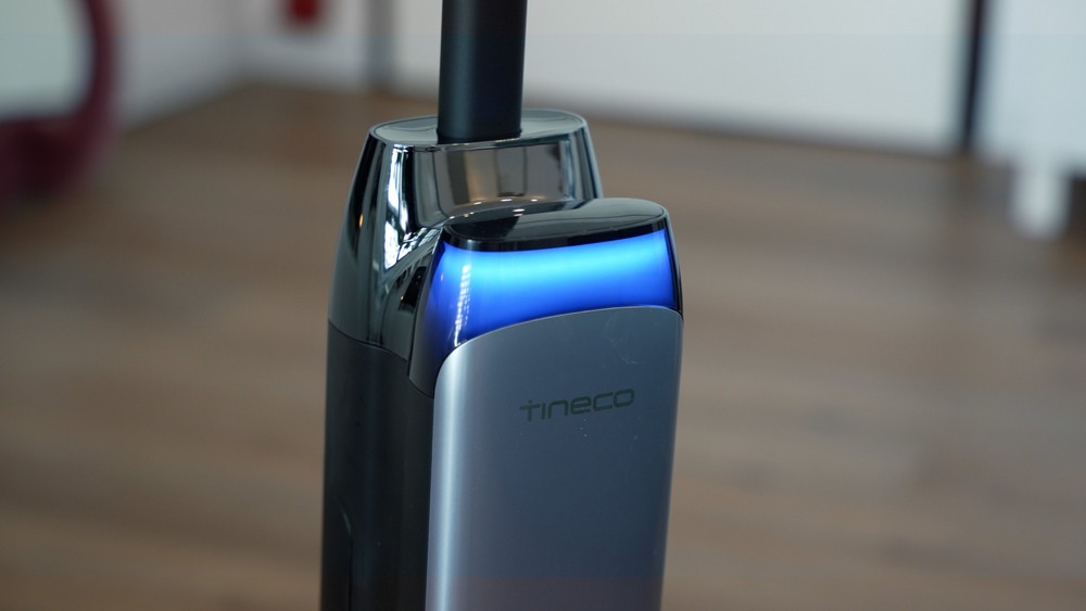 Dal punto di vista cromatico, Tineco ha optato per un mix di colori che, stando a quando dichiarato, si ispira ai toni cangianti del cielo e dell’aurora boreale, tutto condito da finiture lucide e a specchio per alcuni dei componenti. L’obiettivo di questo re-styling è ovviamente quello di posizionare questo modello nella fascia alta del mercato non solo quando si parla di prestazioni. Tineco, con questa generazione ha lavorato infatti in maniera importante anche su quello che possiamo definire come il valore d’arredo del prodotto. Una attenzione verso i dettagli estetici che può sembrare secondario in un prodotto per la pulizia, ma che assume rilevanza se consideriamo che sempre più utenti lasciano questi dispositivi a vista in ambienti di vita quotidiana. Io stesso l’ho posizionato in salotto; ovviamente in un angolo che non sia troppo visibile, ma comunque in salotto.