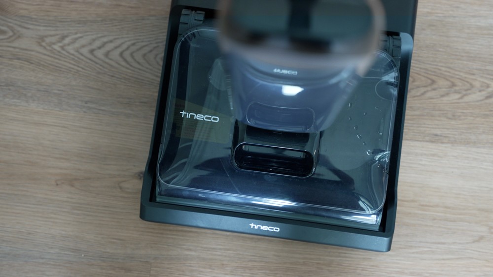 Dal punto di vista idraulico, il dispositivo adotta una configurazione a tre camere per la separazione dell’acqua all’interno del circuito di aspirazione. Questa soluzione è particolarmente efficace quando la macchina opera in modalità coricata (180°), per esempio sotto un letto: in altri modelli, in assenza di barriere meccaniche, l’acqua sporca tende a rifluire verso il motore, con il rischio di danneggiarlo. Tineco invece ha implementato una camera intermedia che devia l’acqua verso un compartimento di sicurezza, evitando il contatto diretto con le componenti elettriche.