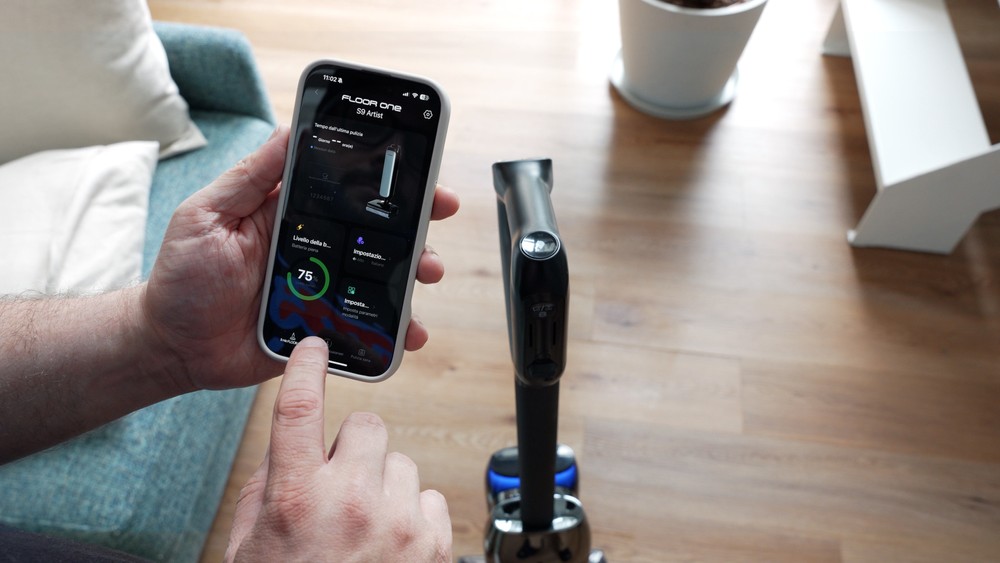 Come già accadeva per le soluzioni precedenti, anche questa S9 Artist può essere collegato via Wi-Fi all’app ufficiale Tineco, disponibile sia per Android che per iOS. Il processo di pairing è semplice e ben guidato, richiede solo pochi minuti e consente da subito di interagire con il dispositivo in tempo reale.