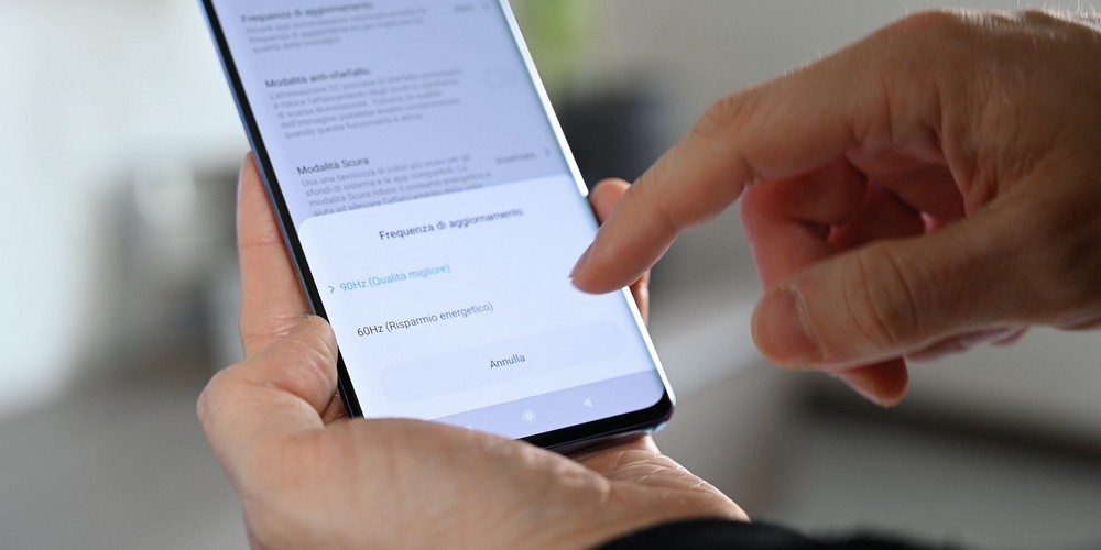 Terminata l’analisi delle fotocamere vi voglio parlare del fantastico display che abbiamo a bordo di questo smartphone. Si tratta di un pannello AMOLED da 6,67 pollici di diagonale con risoluzione fullHD+, rapporto d’aspetto di 19.5:9 e refresh rate a 90Hz. È vero, esistono già soluzioni che offrono refresh rate a 120 Hz su risoluzioni maggiori, e ben vengano, ma vi posso assicurare che 386 ppi sono una densità più che sufficiente, è impossibile riconoscere i pixel a occhio nudo, e le differenze tra 90 e 120 Hz sono molto meno evidenti rispetto al passaggio 60-90Hz. Detto questo sappiamo tutti che il display è l’elemento più dispendioso in uno smartphone e, se utilizzare questa risoluzione abbinata a questo refresh rate ci permette di guadagnare un po’ di autonomia, allora ben venga questo piccolo compromesso.