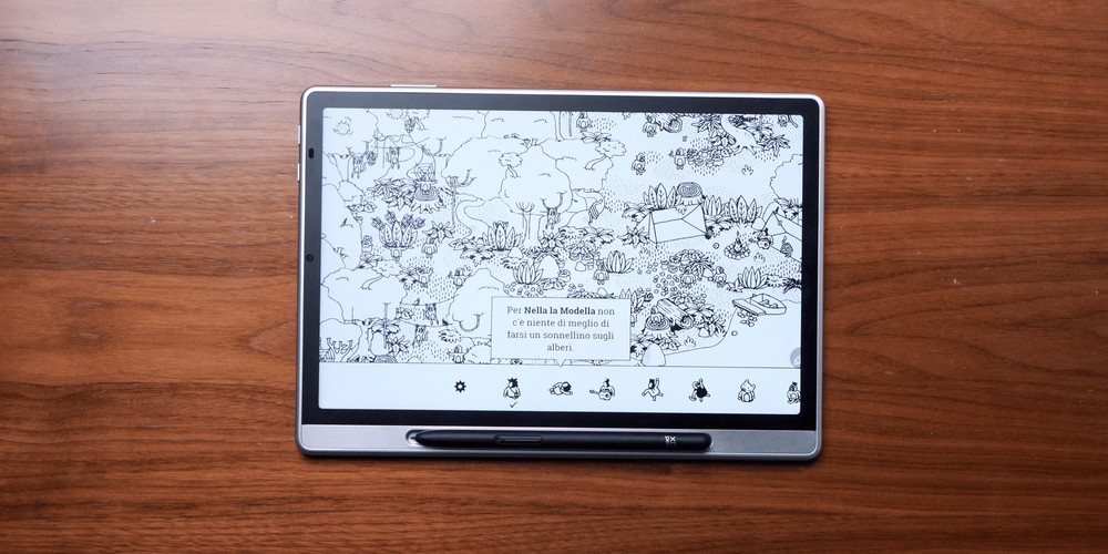 Il primo elemento che colpisce osservando il Magic Note Pad è lo schermo. Non si tratta di un classico pannello lucido, soggetto a riflessi e distrazioni, ma di un display opaco con finitura satinata. Questa scelta riduce l’affaticamento visivo e offre una sensazione più vicina a quella della carta, particolarmente apprezzabile quando si leggono testi lunghi o si scrive per molte ore.