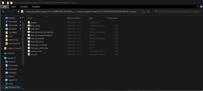 Se il programma dovesse darvi un errore, potrebbe essere semplicemente necessario spostare i file che avete scaricato in un percorso diverso. Ad esempio io ho spostato tutta la cartella con i file del firmware nella cartella platform-tool in cui sono presenti adb-fastboot. Ecco quindi la condizione del mio caso con cui la procedura ha avuto successo.