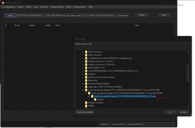 Come si vede nell’immagine, in basso c’è la spunta su “clean all and lock”, questo andrà a cancellare tutti i dati dello smartphone e bloccherà il bootloader riportando lo smartphone alle condizioni di fabbrica.