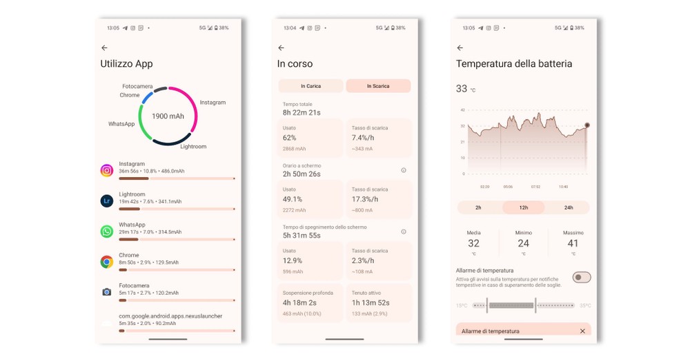 Parliamo anche di temperature perché seppur negli Emirati Arabi Uniti avevamo medie di 38°C il Pixel, con anche la cover a gravare la situazione, si è aggirato su una temperatura batteria di 30-32°C di media nelle 24 ore. I picchi di massima sono stati di circa 40 massimo 43 gradi, simili a ciò che si può riscontrare con un iPhone 14 Pro o iPhone 15 Pro nelle stesse situazioni. Attenzione perché vi ricordo che stiamo parlando di temperature batteria, non del SOC. Soltanto nella giornata più stress, quella dell’evento di lancio dei nuovi POCO F6, ho raggiunto una media di 35°C con massime di 45°C, risultato che soltanto Galaxy S24 in questa gen potrebbe superare.