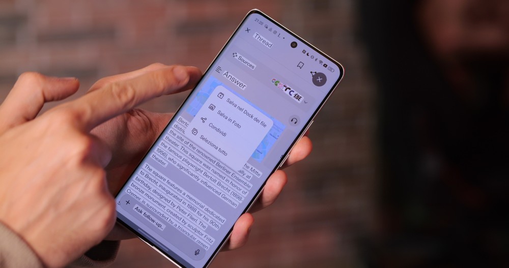Fatto ciò possiamo ad esempio tenere premuto su immagini e salvarle in galleria o condividerle nello Smart Loop, idem per il testo. Insomma è un vero e proprio strumento di estrazione multimediale. Io personalmente ho sfruttato queste due funzioni assieme a Perplexity AI, ma potete all’evenienza usare anche Gemini.