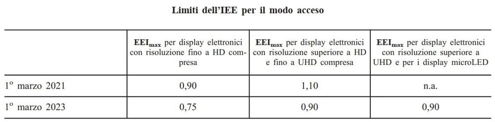 A marzo di quest’anno è entrato in vigore in Europa il nuovo Indice di Efficienza Energetica che impone nuove restrizioni sui consumi e l’equiparazione tra tecnologie di display. In sostanza, questo significa la fine delle deroghe per i pannelli 8K, microLED e OLED in vigore fino allo scorso anno.