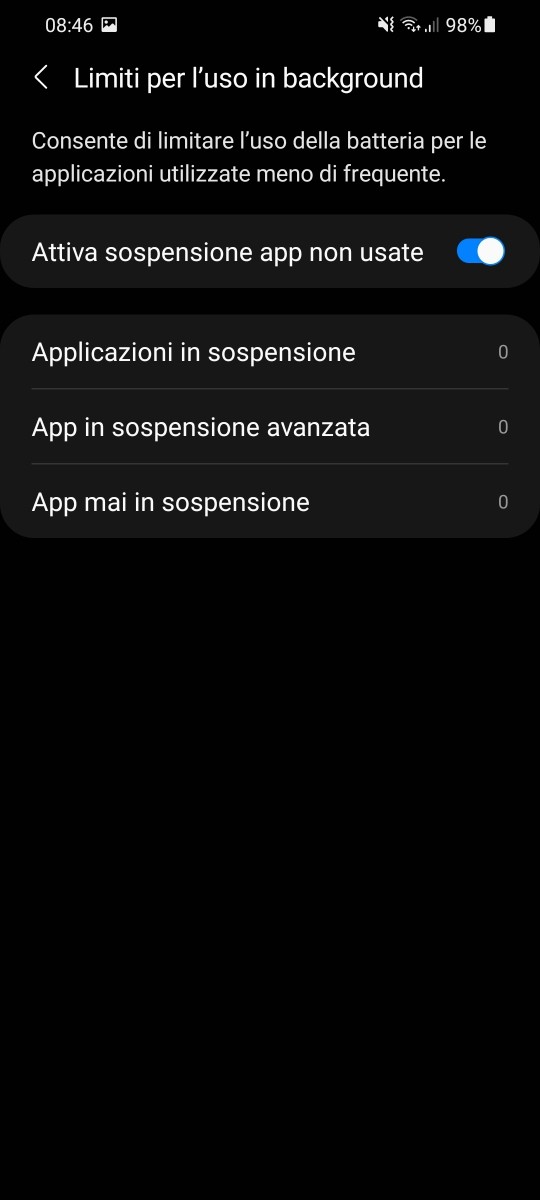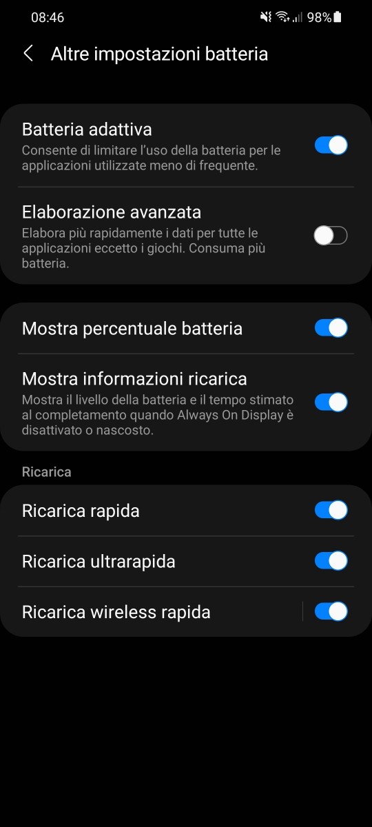 25/1/2021 – 08.46 queste le impostazioni, che sono quelle di default, presenti nelle varie voci batteria.