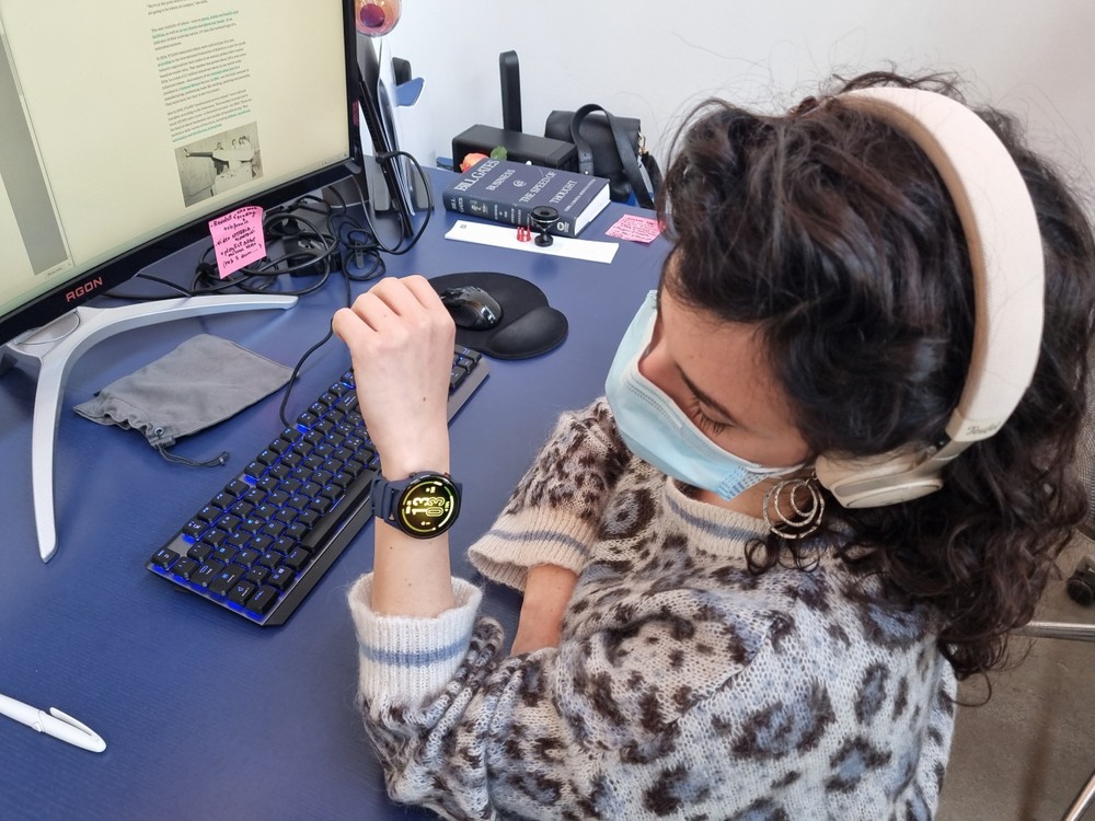 25/1/2021 – 13.04 Elena doppio test in corso. Riconoscete cuffie ed orologio?