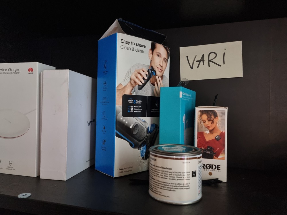 25/1/2021 – 18.01 nello scaffale dell’ufficio c’è anche la sezione vari… stucco per legno e rasoi…
