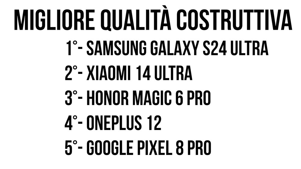 Andremo pian piano ad elencare il migliore in vari ambiti come qualità costruttiva, sblocco e vibrazione, display, prestazioni, batteria e aggiornamenti software. Valuteremo brevemente anche l’aspetto fotografico incentrandoci sulla piacevolezza d’uso più che sulla qualità delle foto, poiché per questo contenuto arriverà un video dedicato più avanti. A fine articolo pubblicheremo una classifica “matematica” che però ha poco valore ai fini del decretare quale sia “il migliore”.