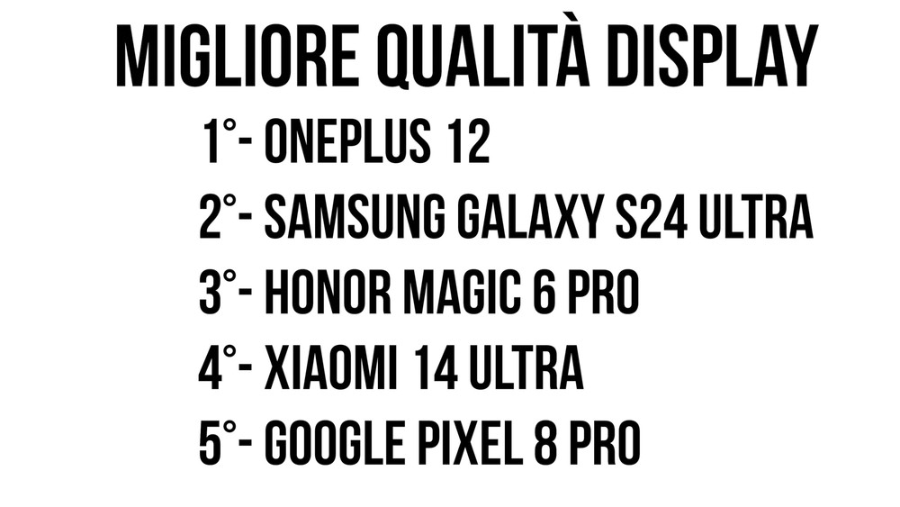 Una cosa è certa: mai come quest’anno abbiamo cinque top di gamma tutti eccezionali e di altissimo livello. Considerando i prezzi su Amazon, forse ad oggi comprerei OnePlus 12: il top di gamma più sottovalutato dell’anno. Questo telefono appena andrà in offerta sarà una bomba incredibile. Originale esteticamente, display super, ricezione super, software finalmente curato nei piccoli dettagli e nell’extra ma anche una fotocamera finalmente competitiva. Non gli manca nulla e costa 500€ di listino meno degli altri. Honor in perenne offerta a 1000€ è un ottimo acquisto per chi cerca il massimo della scheda tecnica, una super batteria ed un software molto semplice e conservativo, stile Huawei.