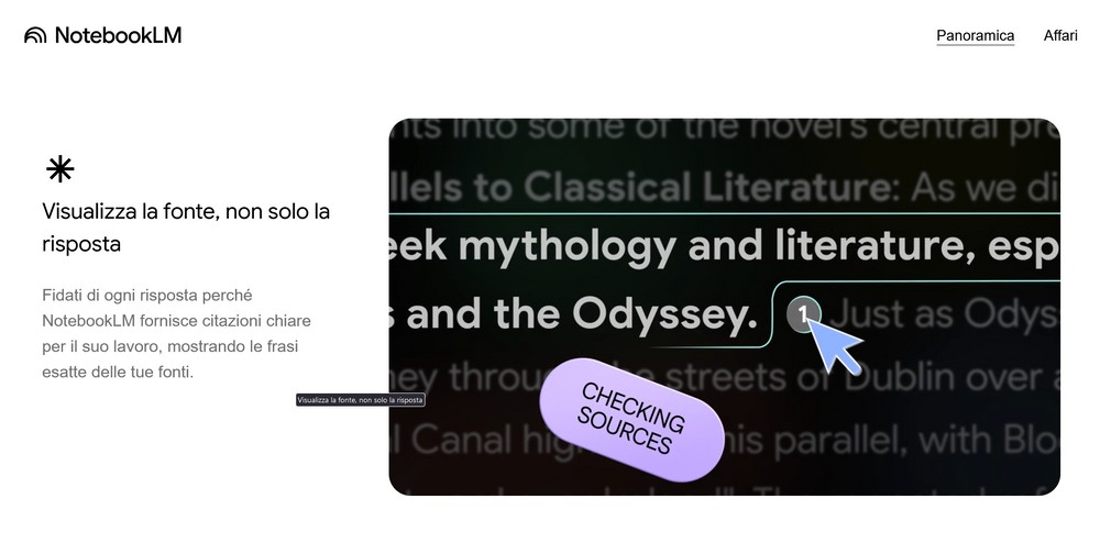 All’interno della risposta è fondamentale la presenza della fonte, il testo preso in analisi dall’IA e dal quale si è generata quella porzione di risposta. Per quattro righe di risposta potremo avere anche più di dieci porzioni di testo prese in analisi e sfruttate come fonte. Cliccando sul numero della fonte verremo rimandati al testo preso in analisi, così da poter effettuare un controllo fine ed evitare quel minimo rischio di risposte inesatte.