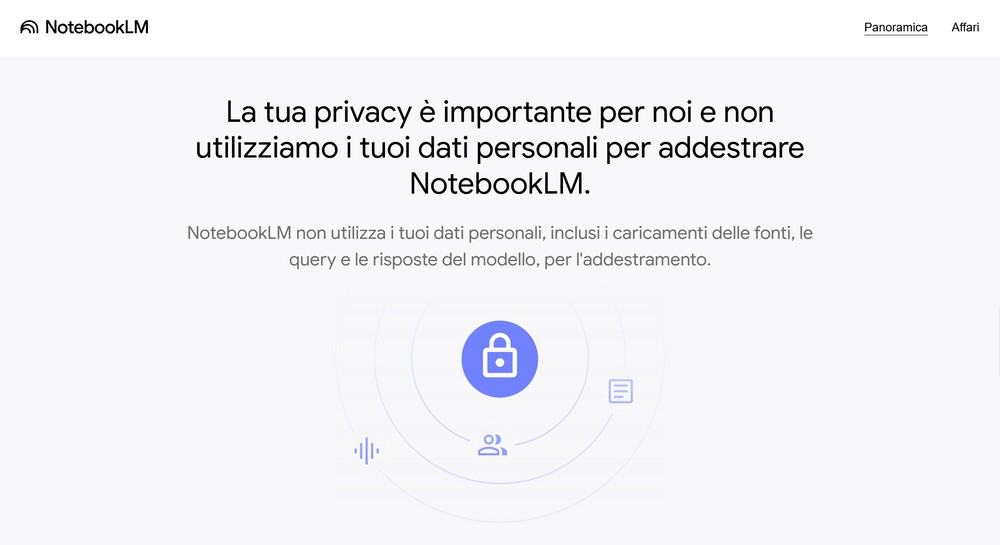 Attenzione: tutto ciò che carichiamo su NotebookLM, a differenza del classico Gemini, non viene utilizzato per addestrare l’IA. Ciò non significa che se forniremo un feedback le nostre query non possano essere prese in analisi da alcuni revisori, seppur tutto ciò sia ben descritto in primo piano poco sopra le nostre fonti caricate, la trasparenza prima di tutto.