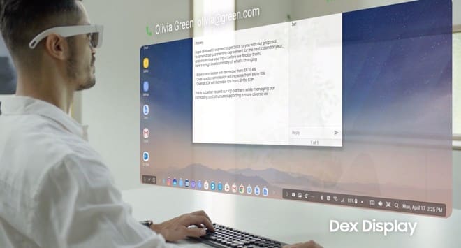 Samsung DeX, giochi, video, documenti, film, controllo da Smartwatch, gestione di input da tastiera e tutto l’ecosistema Samsung interconnesso con possibilità di chiamate, sms e molto altro è quello che i Glasses Lite ci vogliono promettere.