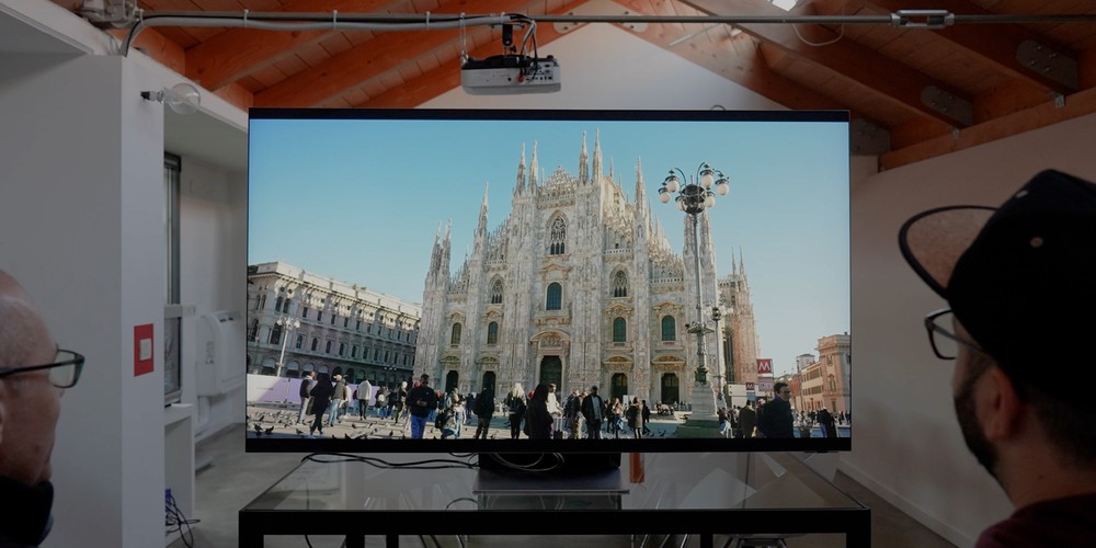 Per non essere condizionati dal girato di partenza, che potrebbe essere stato realizzato per facilitare in qualche modo l’elaborazione di upscaling, abbiamo realizzato una nostra clip demo a risoluzione nativa 8K. Clip che è stata girata per le vie di Milano in diverse condizioni di luce e con diverse focali obiettivo per poter contare su materiale non omogeneo da dare in pasto all’elettronica del televisore.