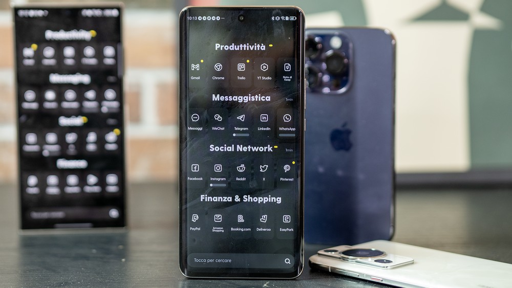 Io ad esempio ho scelto di inserire quattro “cartelle”: produttività, messaggistica, social e finanze ma potete personalizzarlo un po’ come volete. All’interno delle cartelle ho inserito le cinque applicazioni chiave e per le principali ho impostato un tempo di utilizzo. Fatto ciò vedremo sotto le suddette app una barra dinamica che ci andrà a segnalare quanto tempo abbiamo utilizzato la determinata app. Per tutte le altre app, c’è un semplice conteggio del tempo che abbiamo passato all’interno di essa. La feature più carina, per quanto riguarda il tempo speso nelle app, è un riepilogo generale al lato della cartella per tutte le app all’interno di essa.