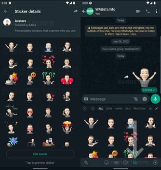 Come evidenziano gli screenshot poco sopra, una volta configurato un avatar con tutte le caratteristiche di nostro gradimento, WhatsApp creerà automaticamente un nuovo pacchetto di adesivi condivisibili con la nostra rete di contatti. Gli avatar creati potranno anche essere utilizzati come foto del profilo.