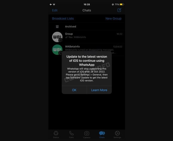 WhatsApp si prepara ad interrompere ufficialmente il supporto alle versioni più datate del sistema operativo iOS e di conseguenza agli smartphone che continuano ad utilizzarle. I gestori della popolare piattaforma di messaggistica hanno iniziato a predisporre una notifica per avvisare i possessori di un iPhone basato su iOS 10 e 11 che il supporto a queste release software verrà meno a partire dal 24 ottobre prossimo. La nota è stata individuata in anteprima dai colleghi di WABetaInfo, ed è confermata dalla pagina ufficiale di supporto che indica iOS 12 come la versione a partire dalla quale WhatsApp fornisce un supporto software.